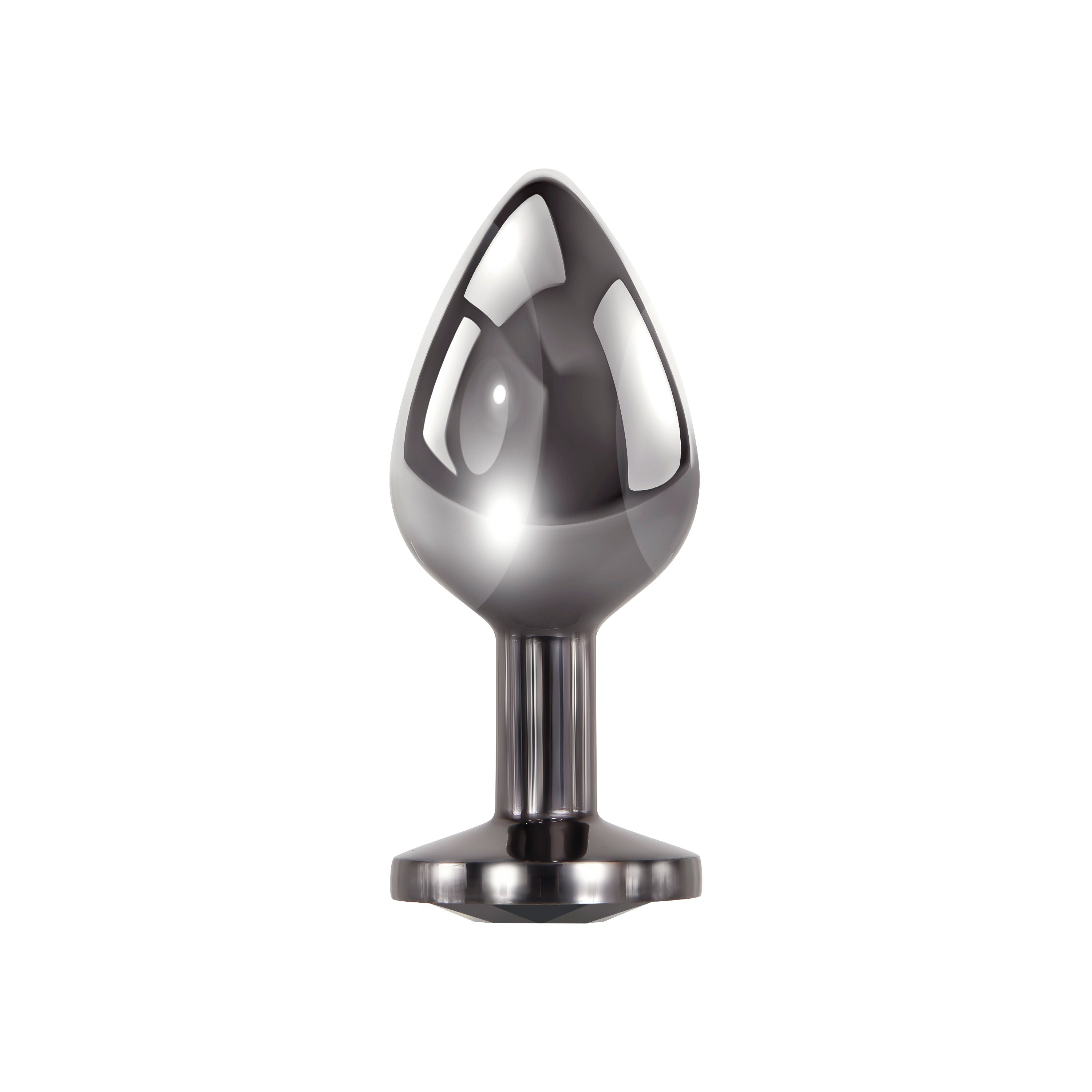 Mid-sized dark metal butt plug with black gem
