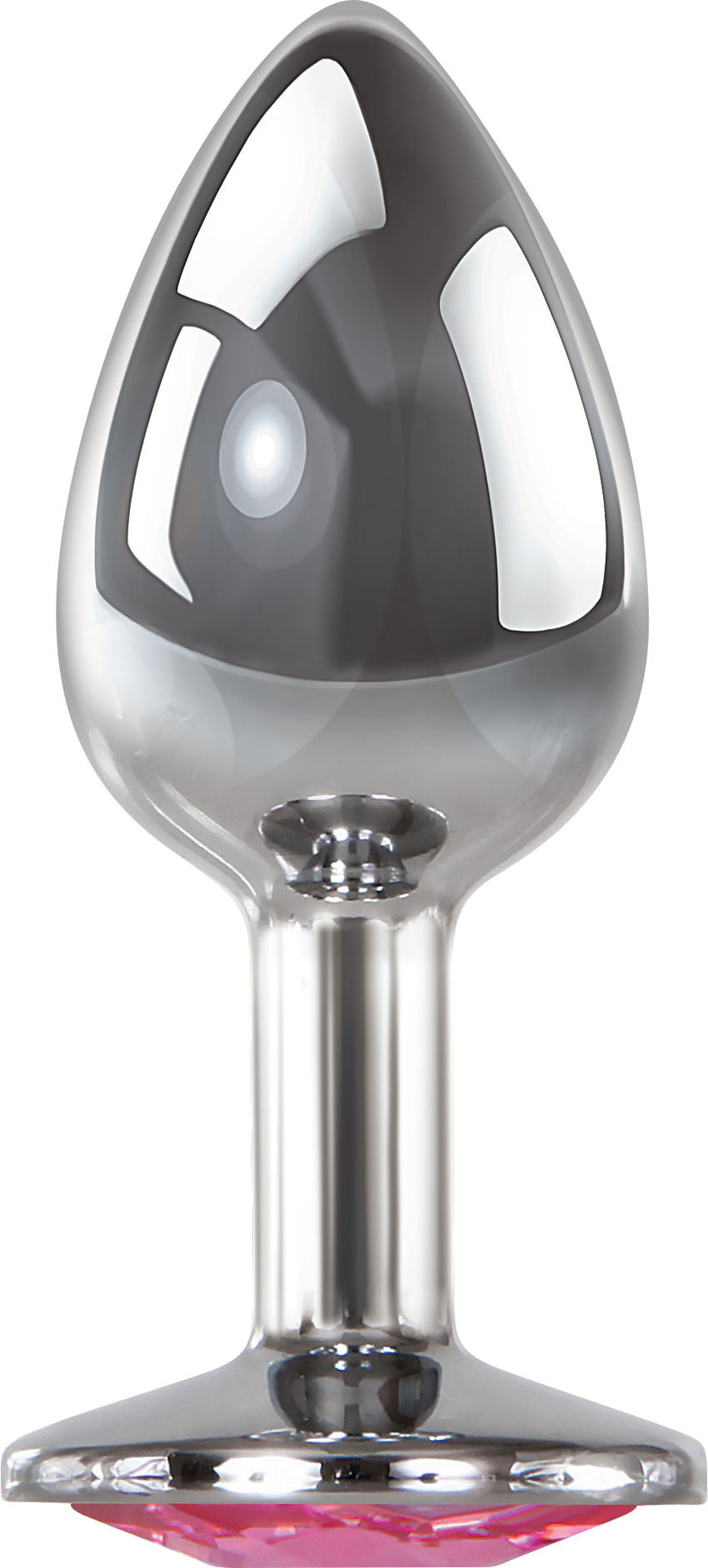 Experience the intense, targeted stimulation that you can only get with the weight & feel of polished aluminum. This medium-sized plug is perfect for begginners or advanced players who crave a body-safe toy that can alse be warmed or chilled for exhilarating temperature play. The flared safety base provides effortless navigation. A sparkling pink jewel sets a playful mood! Its nonporous surface sanitizes to perfection with Adam & Eve toy cleaner and a warm water rinse. A black velvet drawstring bag is included for discreet travel or storage.