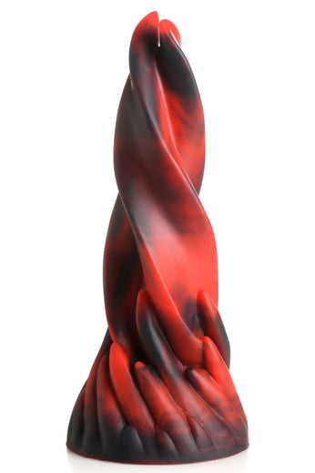 Enhance your fantasy roleplay, kinky cosplay and sensual penetration play with this Twisted Tongues Creature Cocks dildo! From the wide, girthy base two tongues rise up, twisting around each other to form a towering tongue that will soon enter the depths of your holes! The core is firm and bendable and the edges are soft and squishy. Made out of phthalate-free, body-safe, premium silicone, it is silky smooth and slightly tacky. The bold black and red colors add to this demon-themed monster tongue! Dress up in your sexiest seductor/ seductress outfit and strap this into your harness for pegging play and make your partner's fantasies come alive! Press the wide, suction-cup base against any flat surface and ride it hands-free! Use plenty of water-based lubricant and enjoy the girth and sensation from this uniquely shaped dildo!