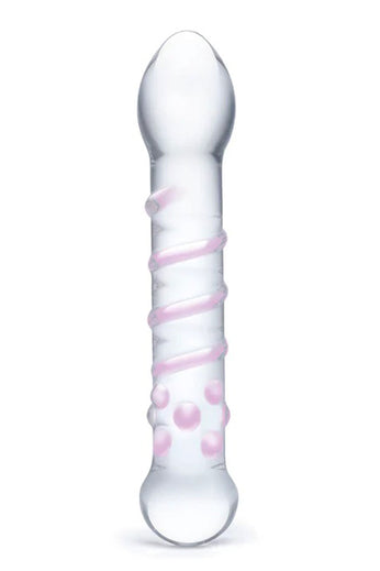 Reach exciting new levels of sexual pleasure with the Spiral Staircase Full Tip Dildo. Featuring beautiful translucent and pink hues, the Spiral Staircase Full Tip Dildo is double-ended to take you to ecstasy any way that you play. A sleek spiral ridge runs along the length of the dildo's shaft with one end of the dildo featuring a tapered tip for easy insertion, and the other tip featuring a small bulb along with nubs on the shaft for a unique sensation with every thrust.