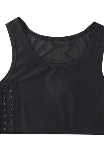 Moderate chest compression with no underwire or padding. Strong mesh provides added support and compression to minimize chest. Adjustable side hook and loop closure for custom fit. Scoop style front and back.