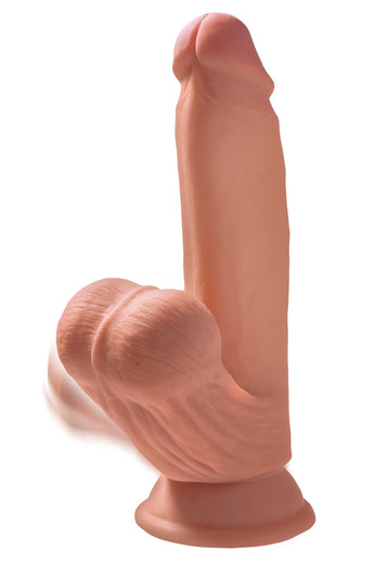 The 7" King Cock Plus Triple Density Cock with Swinging Balls is made of new and improved Fanta Flesh material, making it stiff on the inside and soft on the outside.