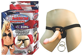 All American Whoppers 6.5-Inch- Dong With Universal Harness- Flesh