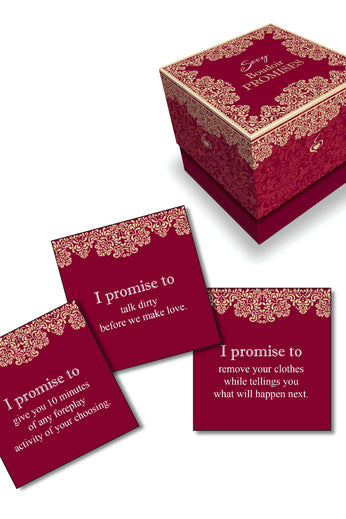 Sexy Boudoir Promises is a collection of 30 cards, each with provocative propositions to fire up your love life.