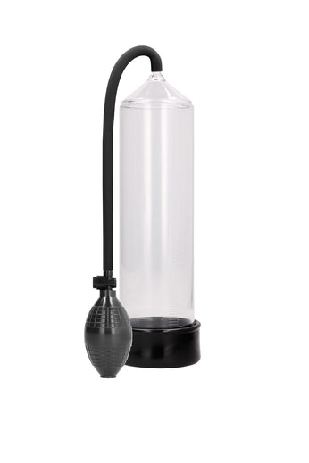 With a total cylinder length of 23cm (9") and a diameter of 6cm (2.35"), this high-quality pump gives you ample possibilities to grow in both directions! The total length of the hose is 25cm (10") and the insertion sleeve is made of smooth Silicone. Surprise yourself every time on how big you can get! There is a transparent version and there are another three different colours to choose from: blue, red or black. This variant comes with a comfortable handheld pump and a quick release valve for your comfort!