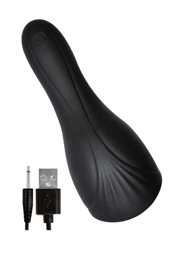 The Enhancer Ultimate Blow Job masturbator features a flicking tongue, 10 suction and vibration patterns, and soft textured silicone to simulate penis pleasing oral sex. Press and hold the power button to turn on; then press again to cycle through the tantalizing sucking functions. For the best experience, please pair with a water-based lubricant and clean before and after each use with toy cleaner. To charge, insert the pin charger into the charging port located on the handle of the stroker and the USB end into a power source.