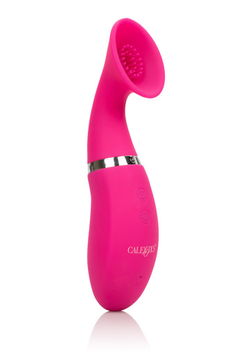Sensually stimulate with the tickling and teasing Intimate Pump Rechargeable Climaxer Pump. With a soft intimate scoop, teasing ticklers and 12 synchronized vibration and suction fuctions, this lustful massager will send you spiraling into a wonderland of pleasure possibilities.