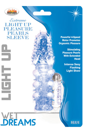 Now you can give a whole new meaning to Light Up your sex life with these Light Up Extreme Pleasure Pearls Penis Pleasure Sleeves. Each one comes with rows of Erotic Silicone Parls as well as a silicone head for extra length and girth that will helps stimulate the Anal or Vaginal walls during sexual play. A multi-colored flashing light show with 4 speed powerful motor really helps spice things up when it comes to wild night erotic play in the dark.