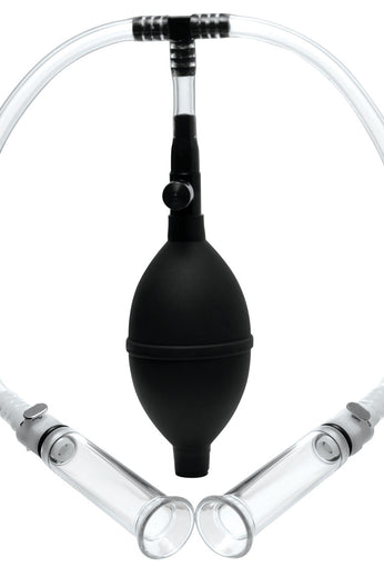 Nipple play enthusiasts will love this easy-to-use pumping system! Nipple suction increases sensitivity and temporarily engorges as it draws increased circulation into the area. The sensation is perfect for foreplay or during masturbation. You can even detach the cylinders and keep them on while you fool around. Just place the industrial-grade acrylic cylinders over your nipples, using lube if necessary to make it airtight. Pump the hand bulb to initiate suction. When you are done, a quick release valve allows you to immediately release the pressure, effectively freeing your nipples. Excite your nipples in a unique new way!