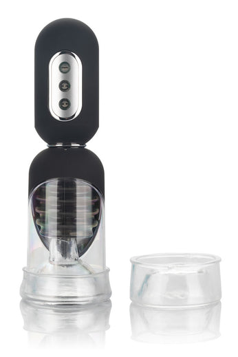 Dive deep into intense suction while the soft, vibrating internal landing pad uses the teasing ticklers to thrill your pleasure tool with full coverage stimulation. Enjoy powerful suction and a superior seal with two unique interchangeable donuts. Use the simple donut for your regular pumping session and the other ultra-tight donut for knee-shaking stimulation. This removable open-ended chamber sleeve is easy-to-use, easy-to-clean and requires no special care.
