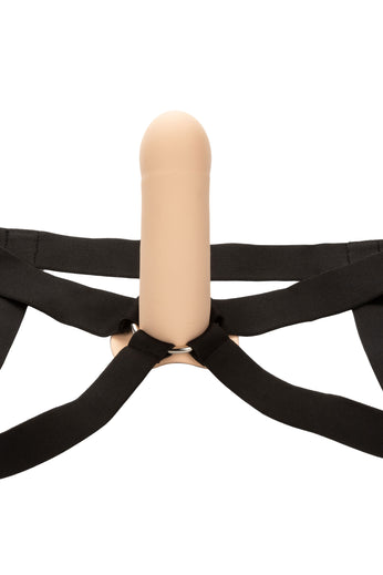 Maximize your pleasure and take it to new lengths with the Performance Maxx Extension With Harness. The smooth sleeve with hollow design adds 2 inches (5 cm) to your length for an enhanced pleasure experience. The included harness is supportive with ultra-thick waist and thigh straps. The wide base ensures a secure fit and solid metal ring holds the extension securely in place during even the most vigorous pleasure play.