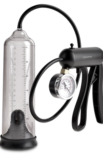 The precision pressure gauge allows you to monitor your pumping progress and view the amount of vacuum pressure. When you've reached your desired size, simply push the quick-release trigger on the top of the handle to instantly relieve the pressure and you're ready to play!