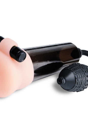 Enjoy every comfort of home when you're on the road with the amazing Travel Trio Pump Set. This portable collection of pump toppers will transform this ordinary penis pump into a combination masturbator and enlarging device. The deluxe 9-piece kit comes in a convenient travel box with handle and includes a Beginners Power Pump, 3 Fanta-Flesh pump topper pleasure sleeves, a waterproof vibrating bullet, a stretchy cockring.
