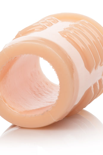 Soft, comfortable to wear enhancer with pleasure ridges adds girth and provides extra stimulation