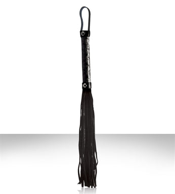 Get kinky in black with the Sinful line. The whip is the perfect compliment to the Sinful line. Light yet durable. Each strand combines for a soft bite response to a willing partner. Add a spark of excitement to your play time. Made of vinyl and leather.