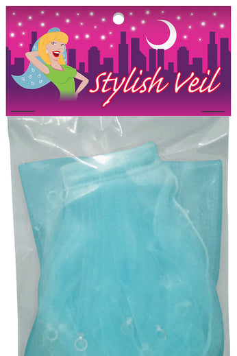 The bride-to-be is sure to get plenty of attention from guests and other people at the bar or party with this veil! Includes: blue veil with silver rings sewn on.