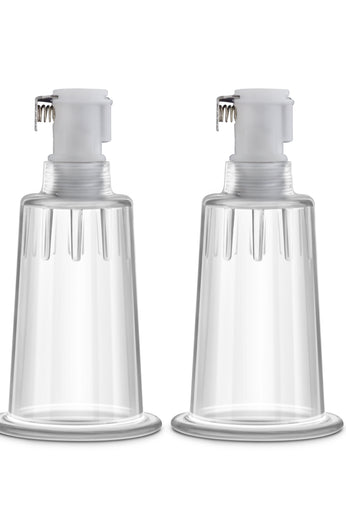 Temptasia Nipple Pumping Cylinders are compatible and interchangeable with other Temptasia pumps and accessories. In use with a quality pump, they'll bring temporary engorgement and heightened sensitivity to your nipples. The cylinders are crystal-clear for easy viewing, plus detachable if you are seeking to hold the suction while you play. This size cylinder, 1" inner diameter, is a comfortable medium size. Made of body safe acrylic, Temptasia Cylinders are easy to use and easy to clean.