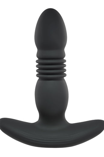 You'll Trust The Thrust after you experience the power of this vibrating and thrusting Butt Plug. Made of velvet-smooth silicone, this discreet-sized plug provides an indulgent fullness as you experience the variety of 10 speeds and rhythms. Explore hands-free play with the elegantly simple remote.