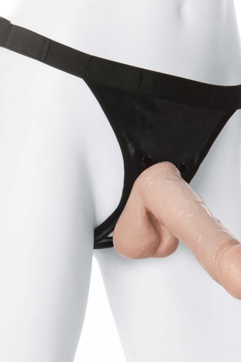 Realistic cock is insertable up to 6.2" (15.2 cm).